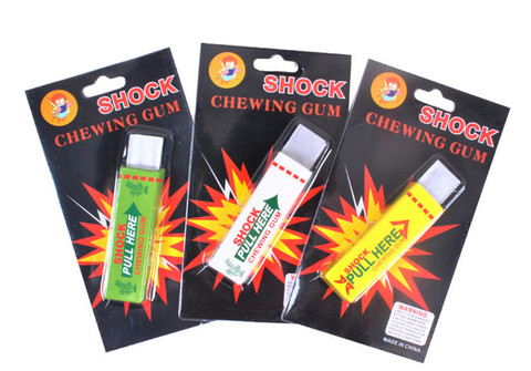 Electric shock joke chewing gum pull head shocking toy gift gadget prank friend. These shock gum pranks are great for fooling family and friends. Electric shock chewing gum prank toy inside video. An electric shock is the effect of passing an electric current through the body. Today in i'll show you how it's done we'll teach you how to make gum that gives electric shocks. Recycle your worn click lighters and take advantage of them. How on earth do the electric shock prank pens/bubble gum work? Electric shock chewing gum shock you friend practical joke. Frequent special offers and discounts up to 70% off for all products! The victim is offered a stick of gum from a box, and touching this triggers the shock. Electric shocking prank shock gum shock pen and shock calculator jeromeasf. Electric shock chewing gum prank toy.inside video this 'chewing gum' is really very funny. More than 54 shock gum at pleasant prices up to 37 usd fast and free worldwide shipping!